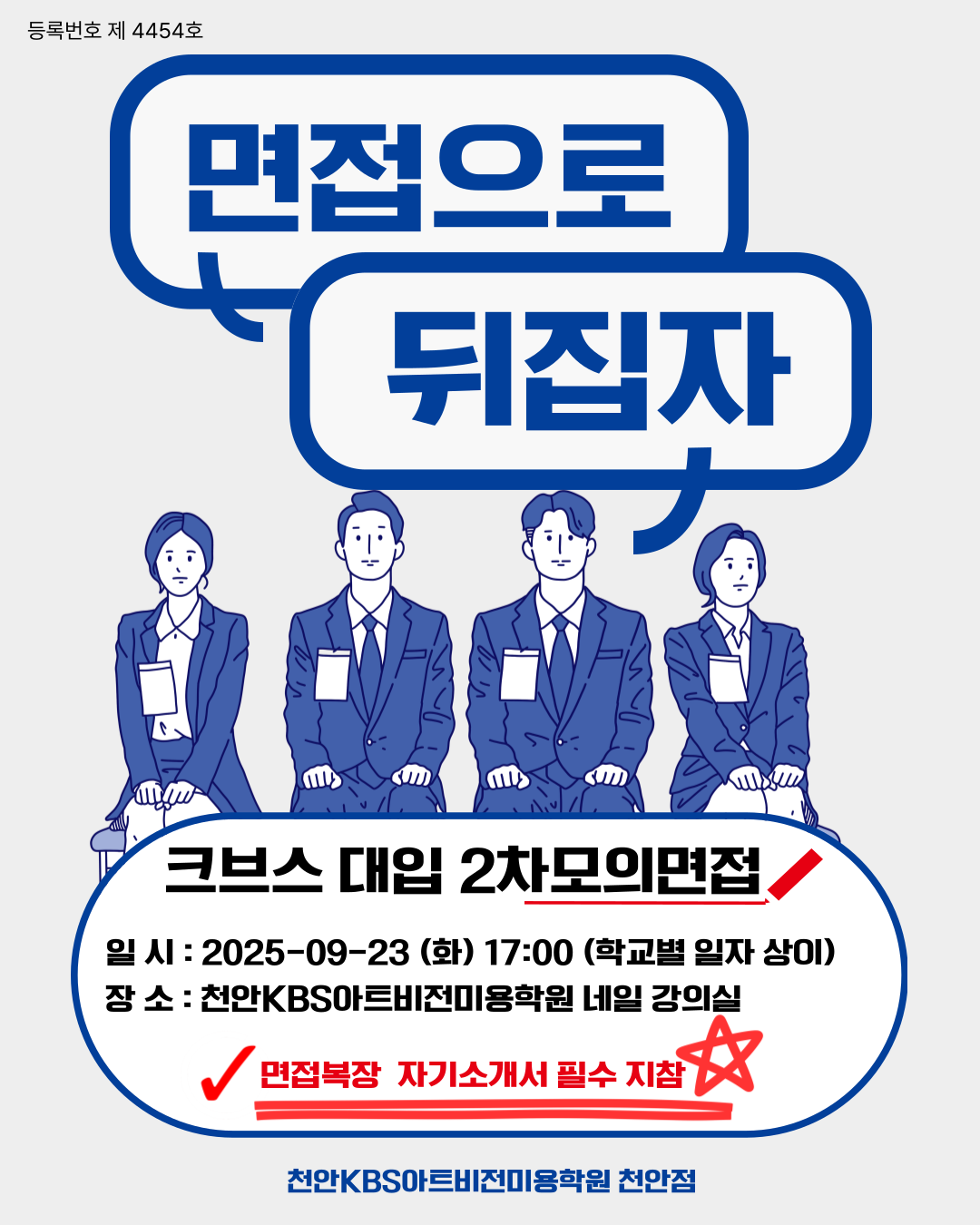 대학 합격을 위한 모의면접! 페이지 정보 작성자 관리자[천안] 작성일25-09-23 11:38 조회95회 댓글0건 관련링크 이전글 목록 본문 대학 합격을 위한 모의면접! 이전글 목록