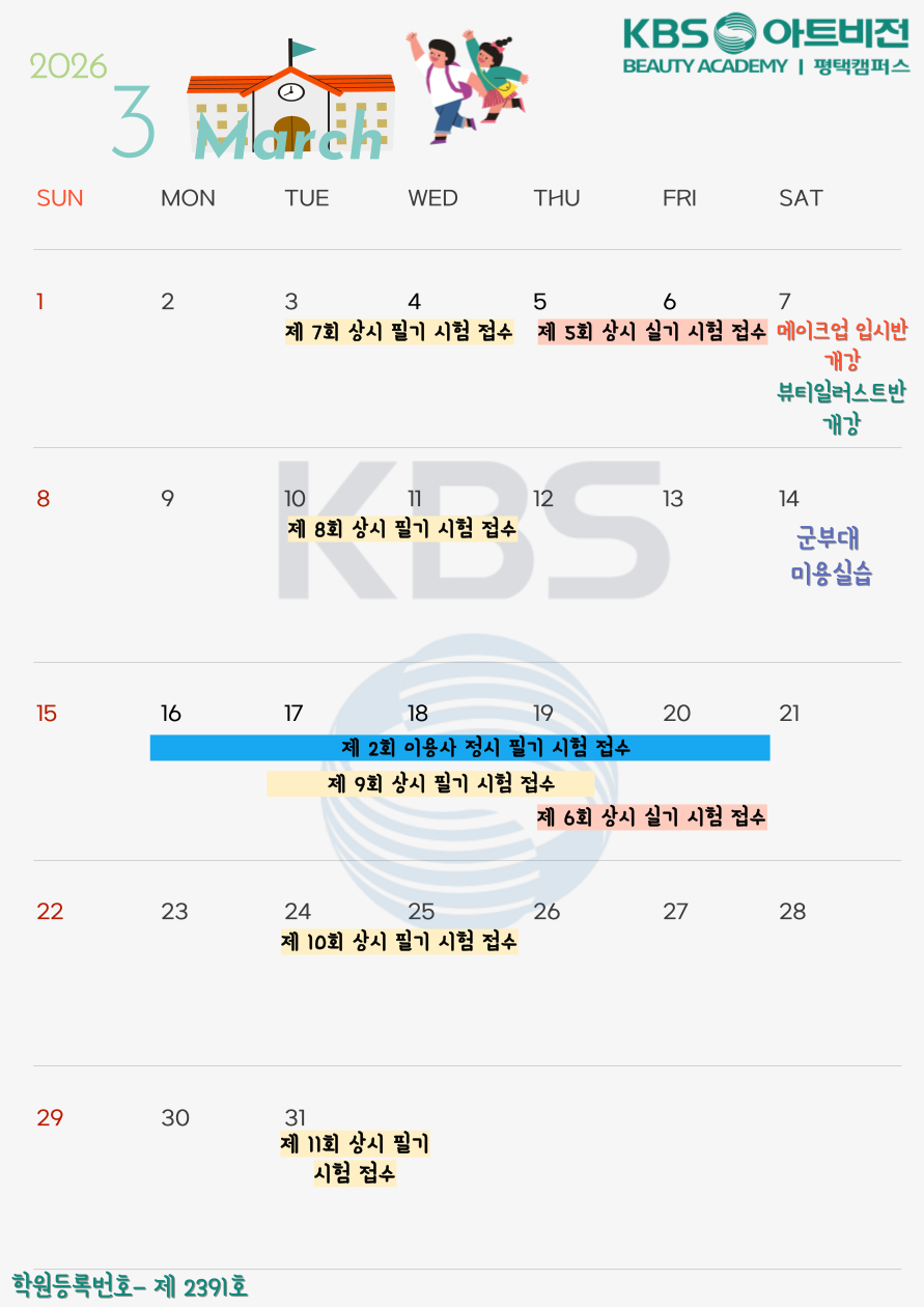 KBS아트비전미용학원이 알려드리는 공지사항 및 이벤트안내 입니다.