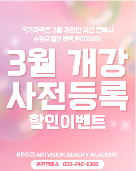 KBS아트비전미용학원이 알려드리는 공지사항 및 이벤트안내 입니다.