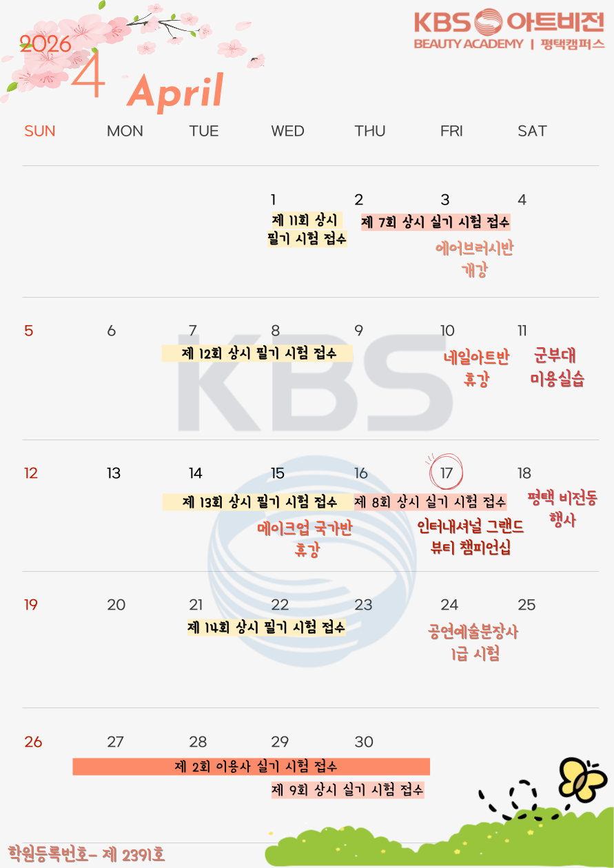 평택 크브스 4월 일정표입니다!