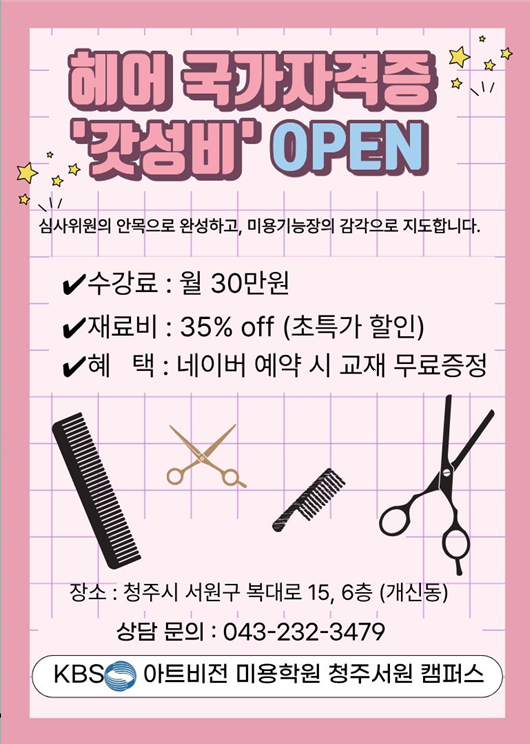 헤어 국가 자격증 '갓성비' 오픈 페이지 정보 작성자 헤어국가 가격증 '갓성비' … 작성일26-04-27 11:43 조회12회 댓글0건 관련링크 https://blog.naver.com/kbscj697/224139312148 4회 연결 이전글 목록 본문 ※수강료: 월 30만원※재료비: 35% off※혜 택: 네이버 예약시 교재 무료증정 이전글 목록