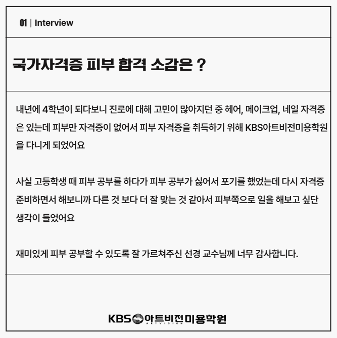 피부 국가자격증 원패스 합격생 '김지민'