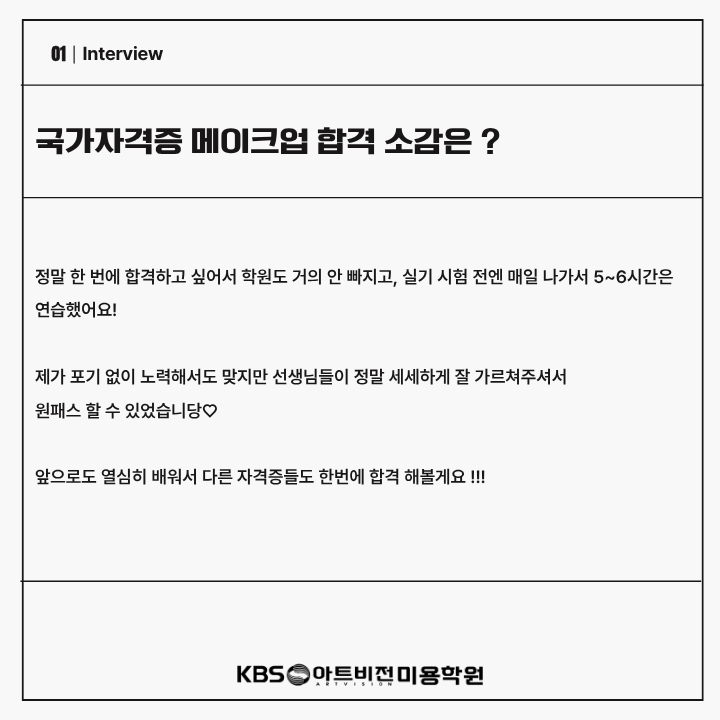 메이크업 원패스 합격! 페이지 정보 작성자 신세빈 작성일26-03-09 11:59 조회199회 댓글0건 관련링크 이전글 목록 본문 감사합니다 추천 0회 추천/비추 기능은 로그인후 이용가능합니다. 댓글목록 등록된 댓글이 없습니다. 이전글 목록