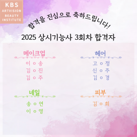 KBS아트비전미용학원의 자격증 합격자 명단 입니다.