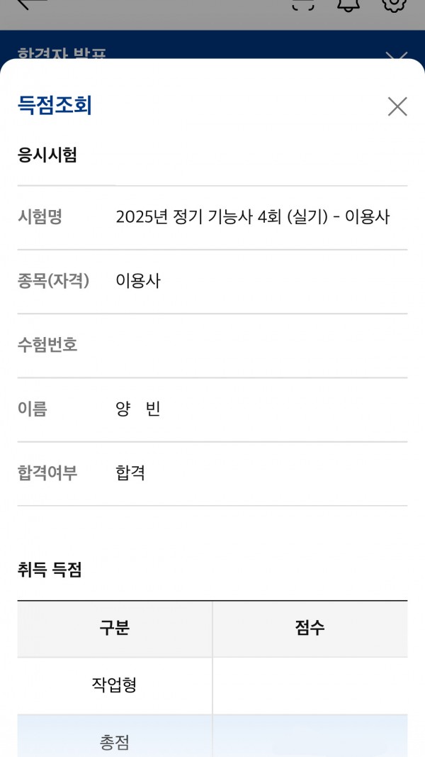 2025년 4회 이용사국가자격증 양*빈님 합격 페이지 정보 작성자 관리자[순천] 작성일25-12-19 11:27 조회52회 댓글0건 관련링크 목록 본문 2025년 이용사국가자격증 양*빈님 합격을 축하드립니다 ! 댓글목록 등록된 댓글이 없습니다. 목록