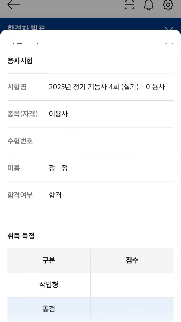 2025년 4회 이용사국가자격증 정*정님 합격 페이지 정보 작성자 관리자[순천] 작성일25-12-19 11:29 조회35회 댓글0건 관련링크 목록 본문 2025년 4회 이용사국가자격증 정*정님 합격을 축하드립니다 ! 댓글목록 등록된 댓글이 없습니다. 목록
