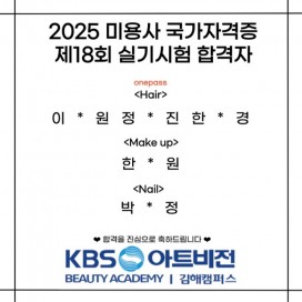 KBS아트비전미용학원의 자격증 합격자 명단 입니다.