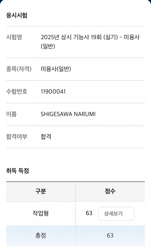 미용사(일반) 국가자격증 합격 ! 페이지 정보 작성자 춘천캠퍼스 작성일25-11-26 16:35 조회18회 댓글0건 관련링크 목록 본문 미용사(일반) 국가자격증 2개월만에 취득 ! 댓글목록 등록된 댓글이 없습니다. 목록