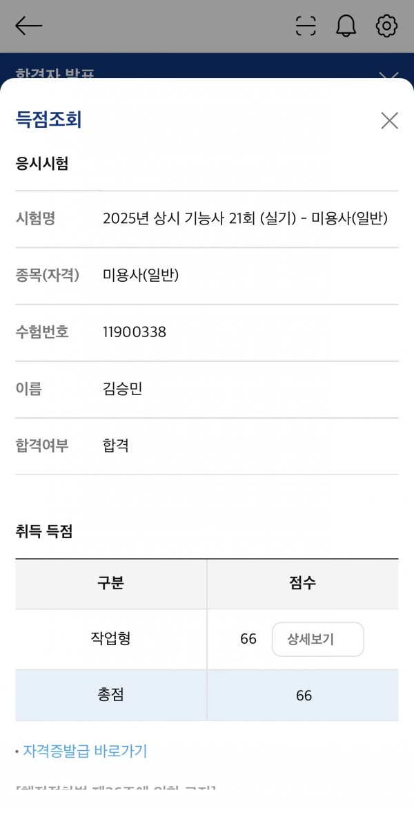 미용사(일반) 고득점 합격! /66점 페이지 정보 작성자 춘천캠퍼스 작성일25-11-27 12:39 조회647회 댓글0건 관련링크 목록 본문 ㅇ 댓글목록 등록된 댓글이 없습니다. 목록