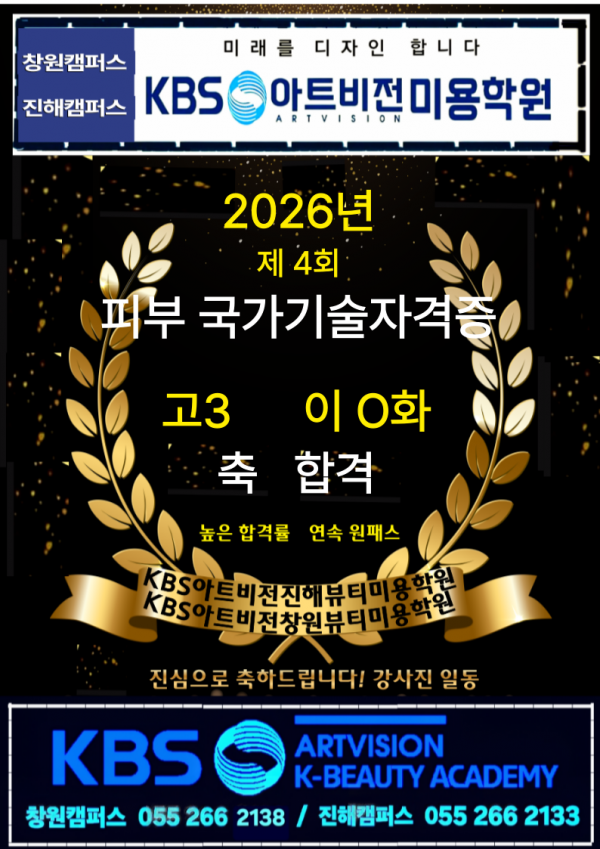 ♥ 이O화 학생 피부 국가가자격증 원패스 합격을 축하드립니다. ♥ 페이지 정보 작성자 관리자[창원] 작성일26-03-19 12:37 조회217회 댓글0건 관련링크 목록 본문 - 댓글목록 등록된 댓글이 없습니다. 목록