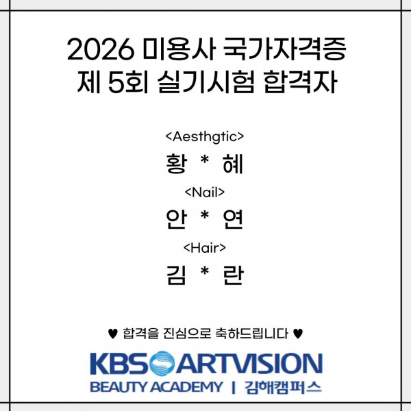 피부, 네일, 헤어에서 각 한명씩 합격자가 나왔답니다!