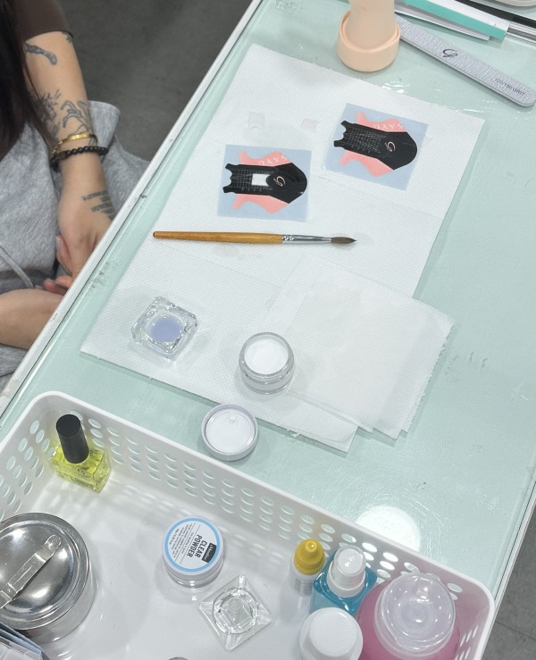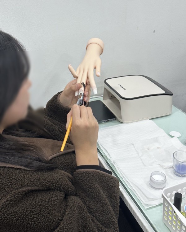 3과제 중 아크릴 프렌치 스컬프쳐를 연습하고 있는 수강생들의 모습입니다
