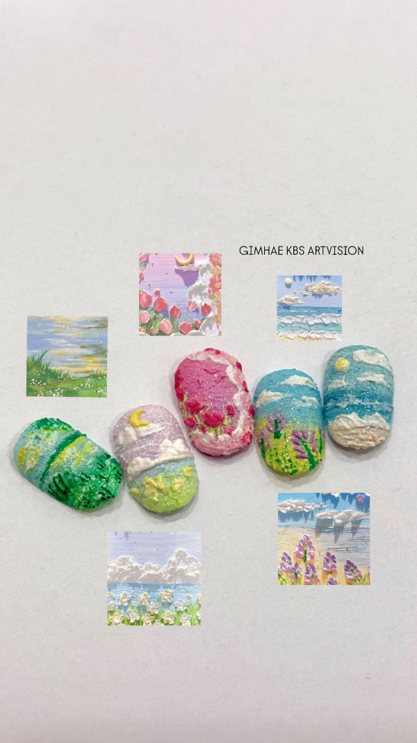 엠보파우더를 사용하여, 거친 붓 터치와 입체적인 질감을 그대로 살린 ‘엠보(Embo) 아트를 응용한 유화네일♥