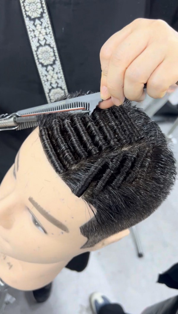 사진 속의 모습은 이용사 국가자격증 과제 중 하나인 아이론 6mm!