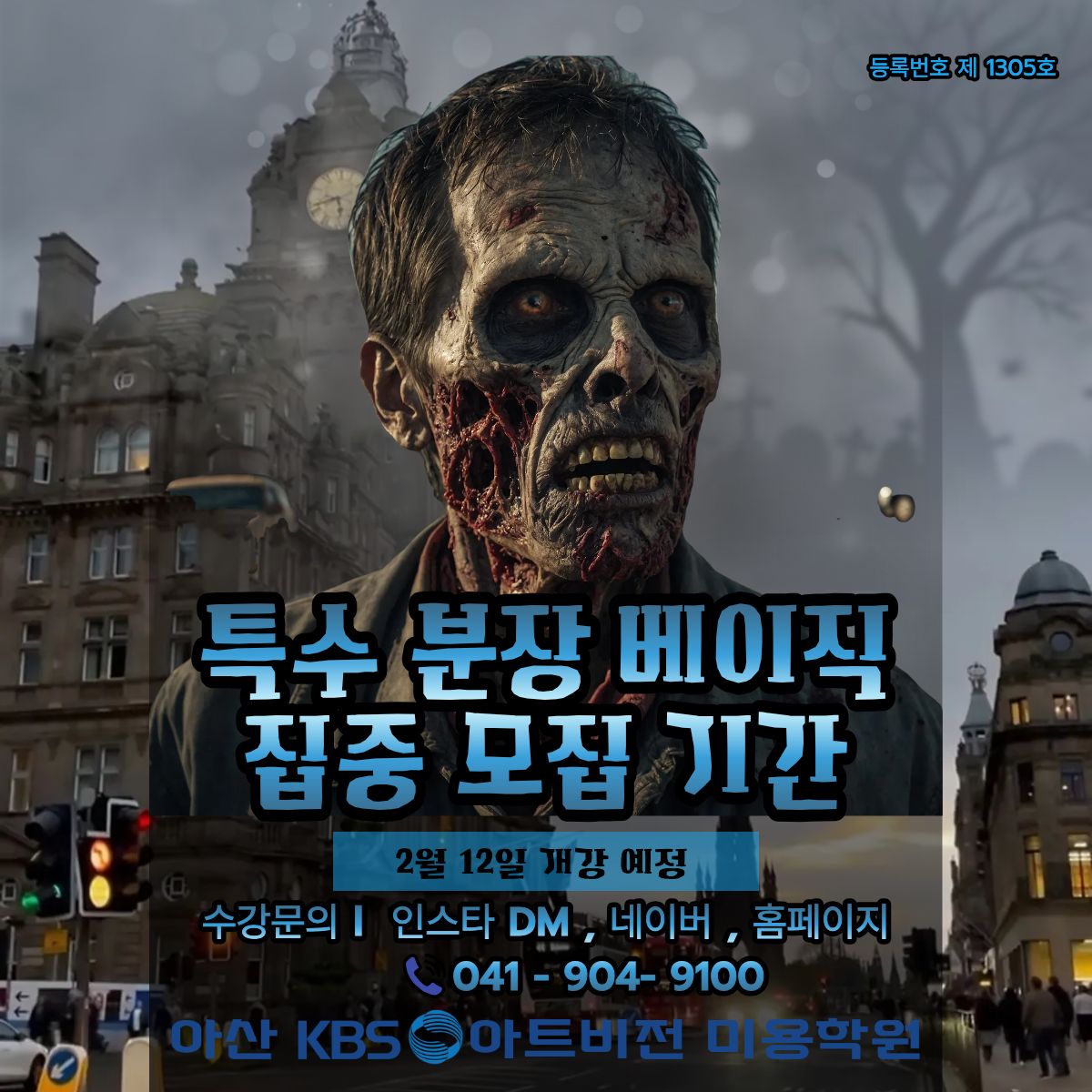 아산 크브스 겨울방학 특강은 특수분장 페이지 정보 작성자 관리자[아산] 작성일26-01-30 16:42 조회51회 댓글0건 관련링크 이전글 목록 본문 KBS아트비전미용학원 아산캠퍼스 2026 특수분장 특강이 개강됩니당!!~~궁금한 내용은 담당 강사님께 문의해주세요 !!~~ 이전글 목록