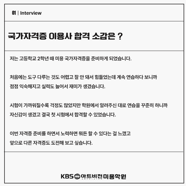 헤어 국가자격증 원패스, 김도연 수강생