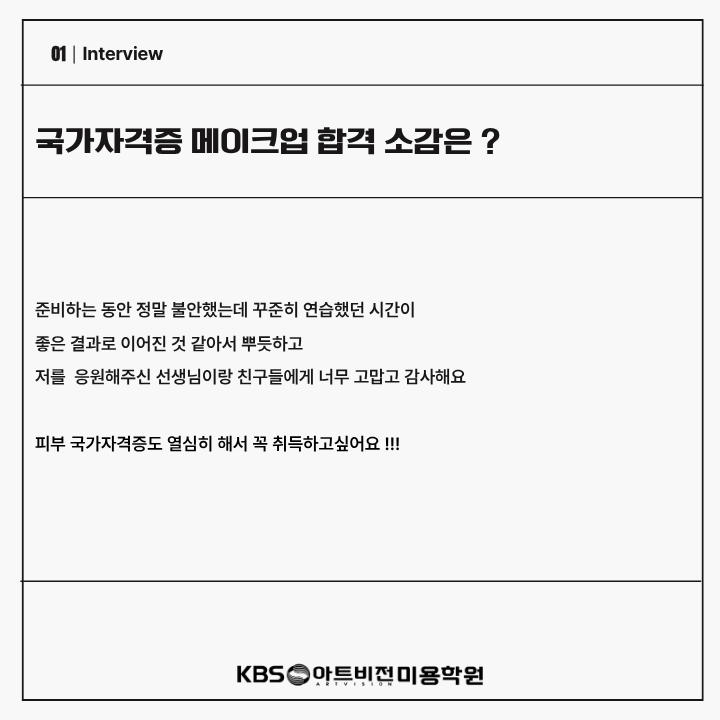 메이크업 합격! 페이지 정보 작성자 김나연 작성일26-03-09 11:58 조회217회 댓글0건 관련링크 이전글 목록 본문 메이크업 합격! 추천 0회 추천/비추 기능은 로그인후 이용가능합니다. 댓글목록 등록된 댓글이 없습니다. 이전글 목록