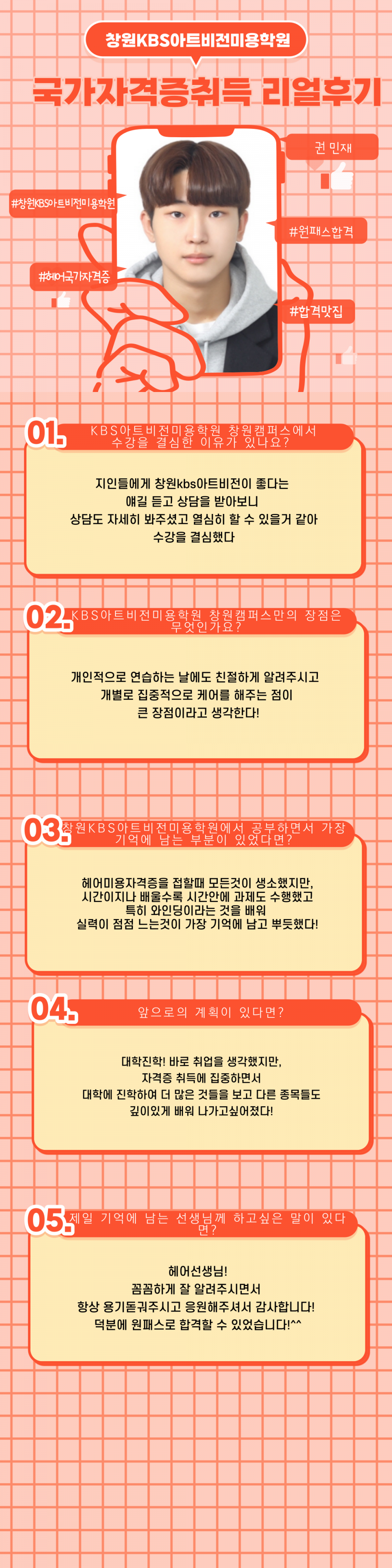 ♥헤어국가자격증 합격 수강생 권민재군의 찐 후기♥ 페이지 정보 작성자 관리자[창원] 작성일23-11-07 13:19 조회3,122회 댓글0건 관련링크 이전글 다음글 목록 본문 추천 0회 추천/비추 기능은 로그인후 이용가능합니다. 댓글목록 등록된 댓글이 없습니다. 이전글 다음글 목록