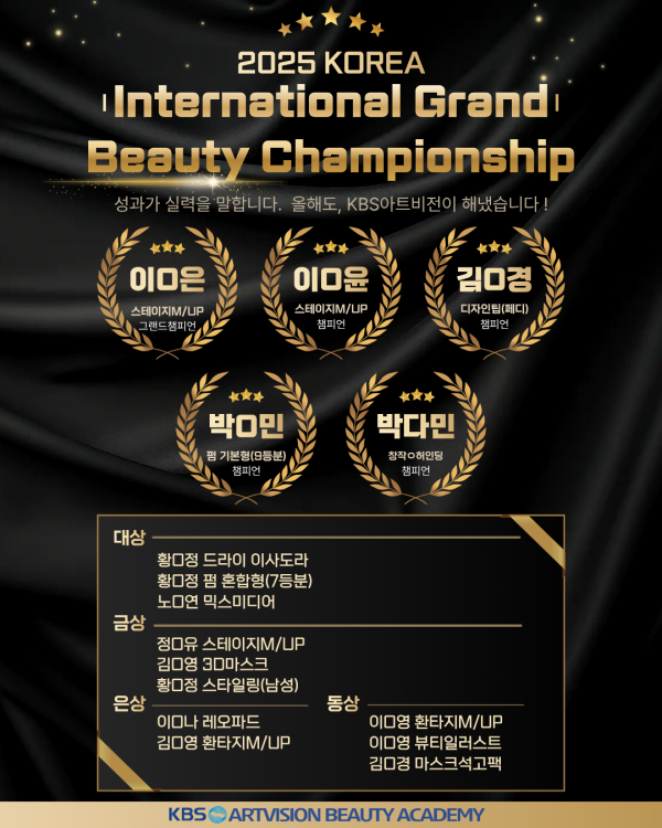 KBS미용학원 학생들이 최근 열린 ‘인터내셔널 그랜드 뷰티 챔피언십’에서 뛰어난 성과를 거두며 국제 무대에서 한국의 미용 실력을 빛냈습니다.