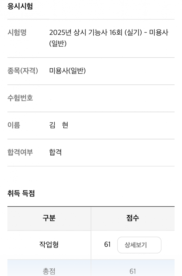 KBS아트비전미용학원의 자격증 합격자 명단 입니다.