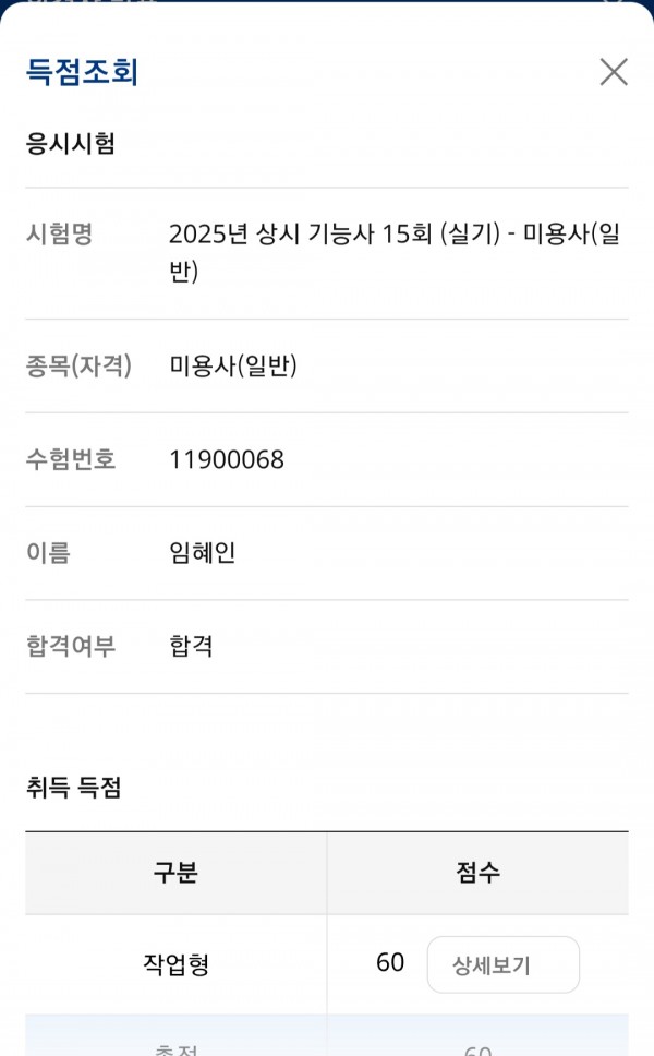 미용사(일반) 합격