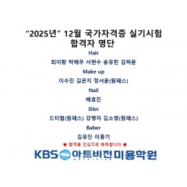 KBS아트비전미용학원의 자격증 합격자 명단 입니다.