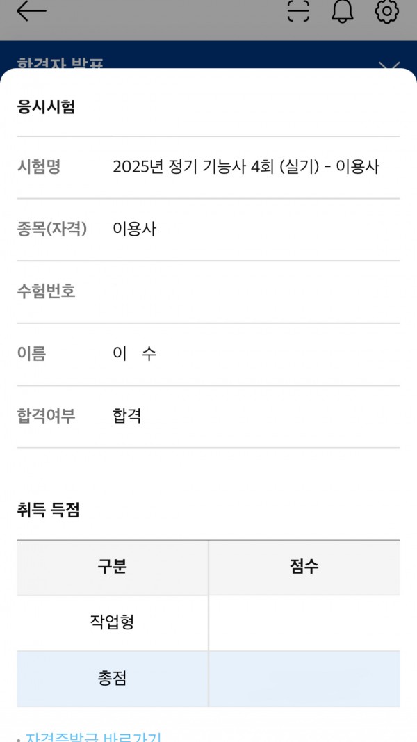 2025년 4회 이용사국가자격증 이*수님 합격 페이지 정보 작성자 관리자[순천] 작성일25-12-19 11:24 조회9회 댓글0건 관련링크 목록 본문 2025년 4회차 이용사국가자격증 이*수님 합격을 축하드립니다! 댓글목록 등록된 댓글이 없습니다. 목록