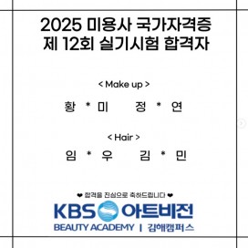 KBS아트비전미용학원의 자격증 합격자 명단 입니다.